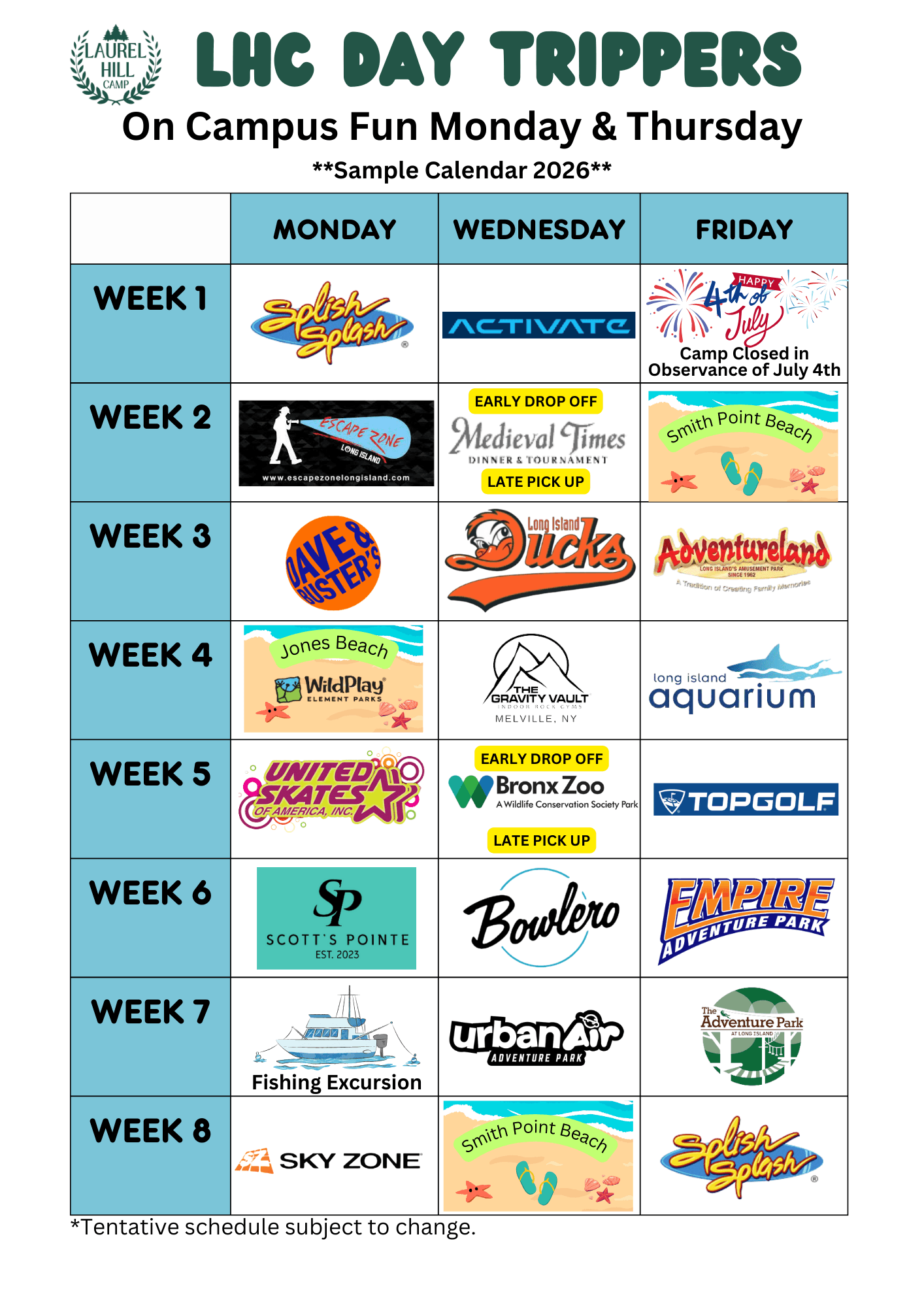 Three days a week (Mon, Wed, & Fri) campers go on exciting, high adventure trips ! Teens venture out on “don’t want to miss” day trips forming lifelong friendships. Campers find themselves on exciting adventures every day, visiting area beaches, going to sporting events, amusement parks, special events, and more! Trips include favorite Long Island destinations as well as excursions to Manhattan and beyond!
